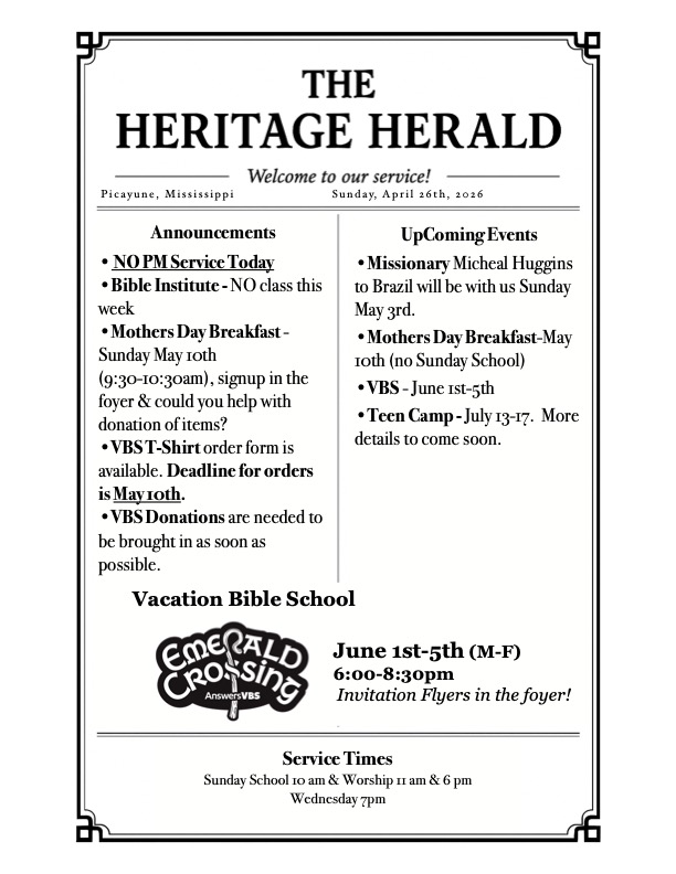 © 2026 All Rights Reserved | Heritage Baptist ChurchPowered by Media Lifeline | HBC Privacy Policy